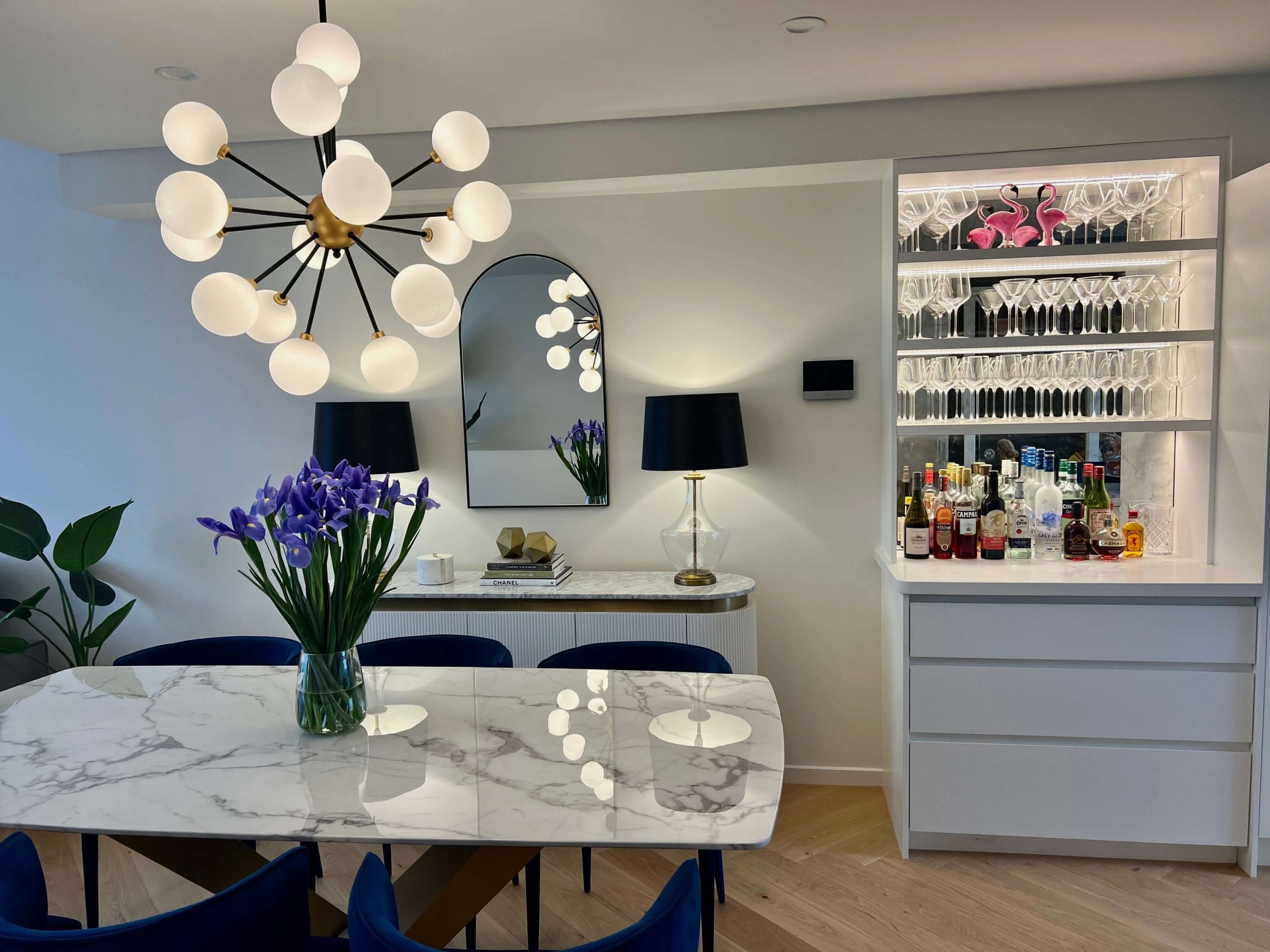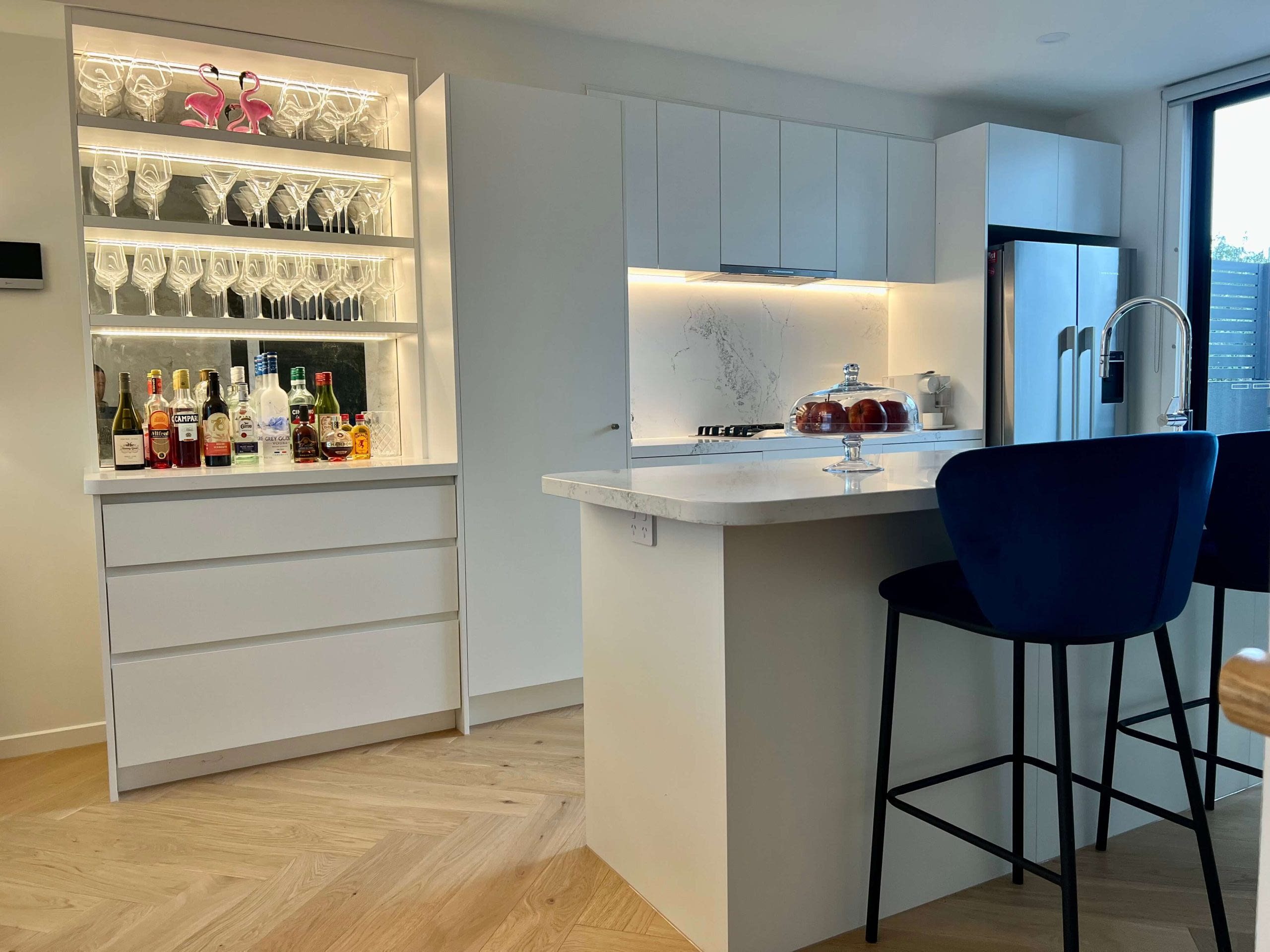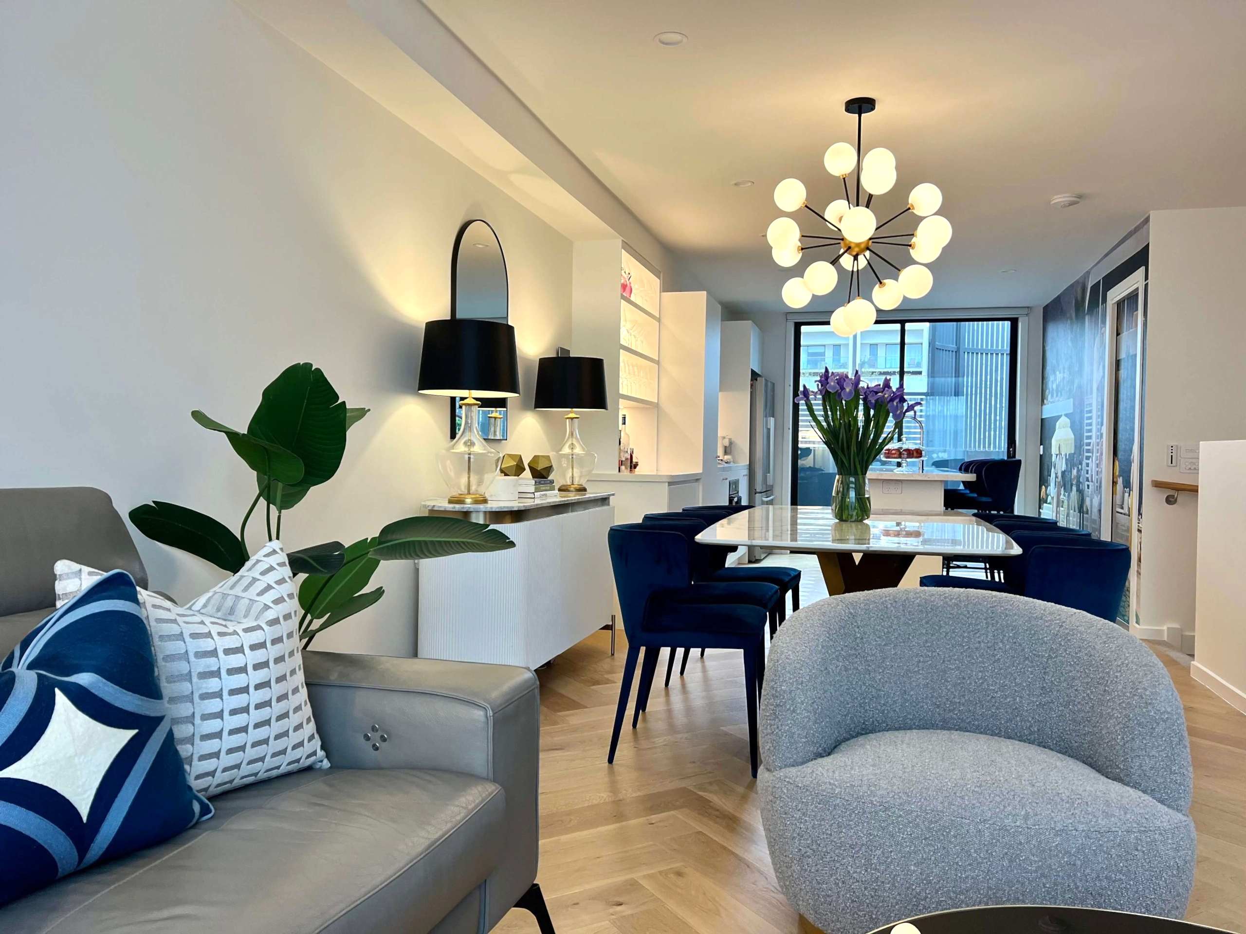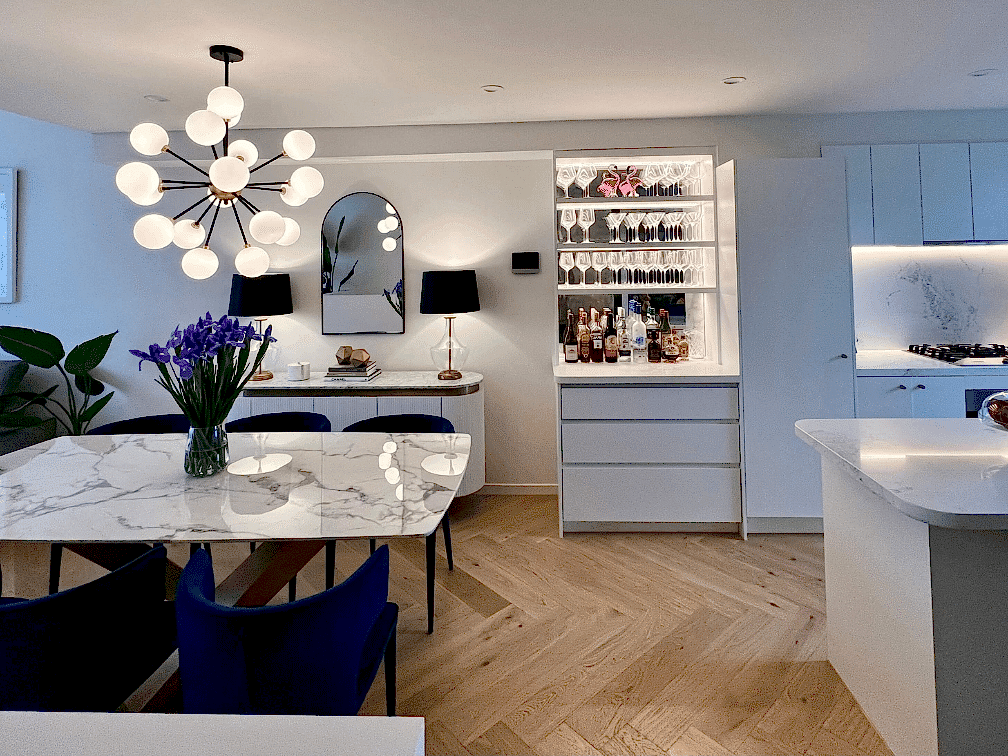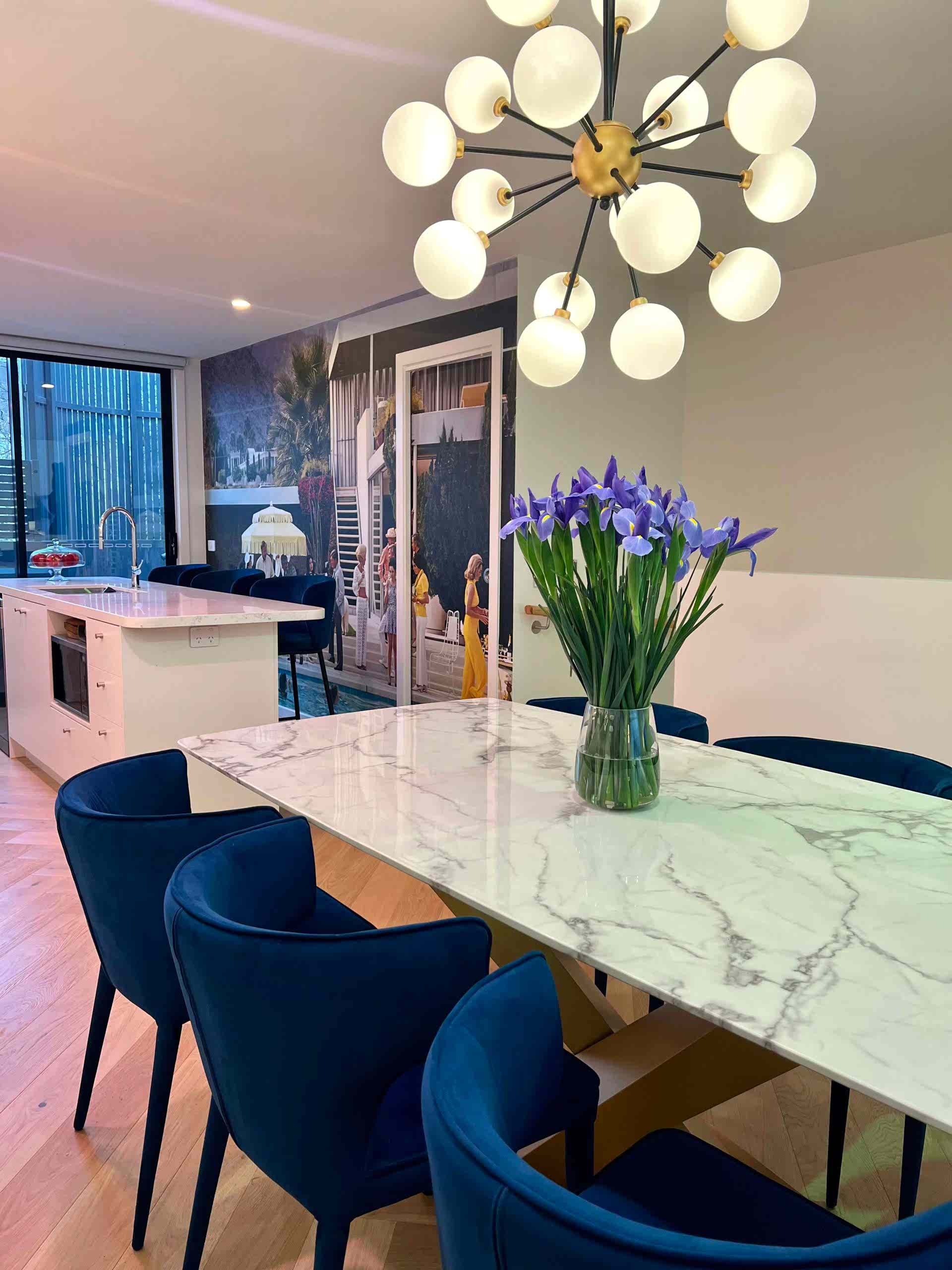 Randall Design transformed this four-level townhouse into a vibrant retreat inspired by Palm Springs. Bold hues, dynamic textures, and smart functionality define the space, with a sunset-toned feature wall and custom bar as standout elements. Bespoke furnishings, handpicked finishes, and mid-century charm blend seamlessly with modern style, creating a home perfect for entertaining and personal expression.