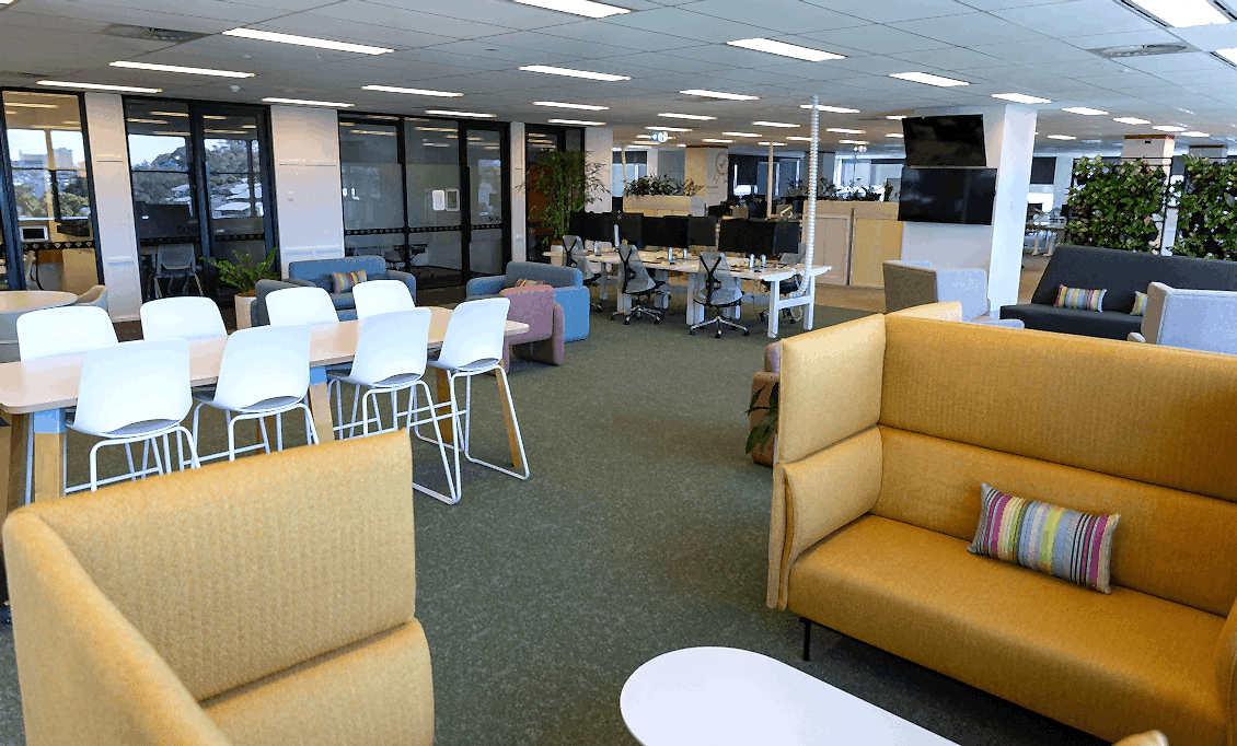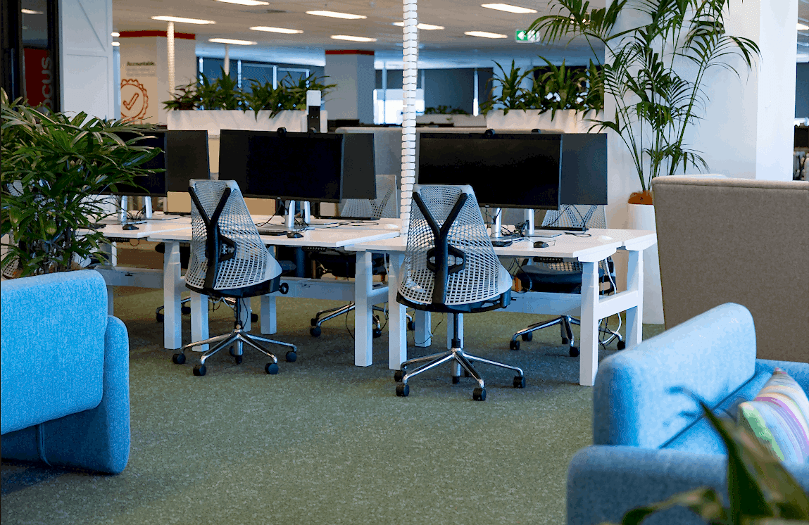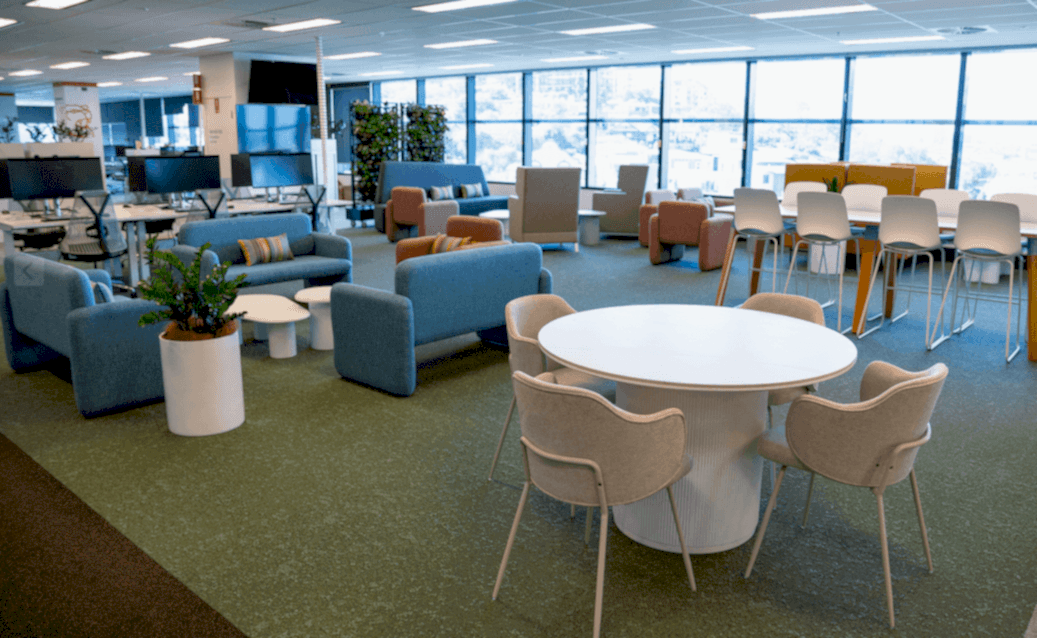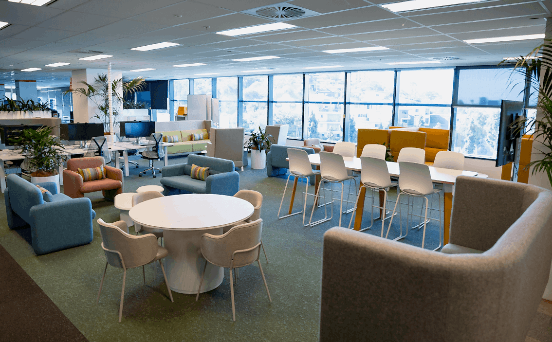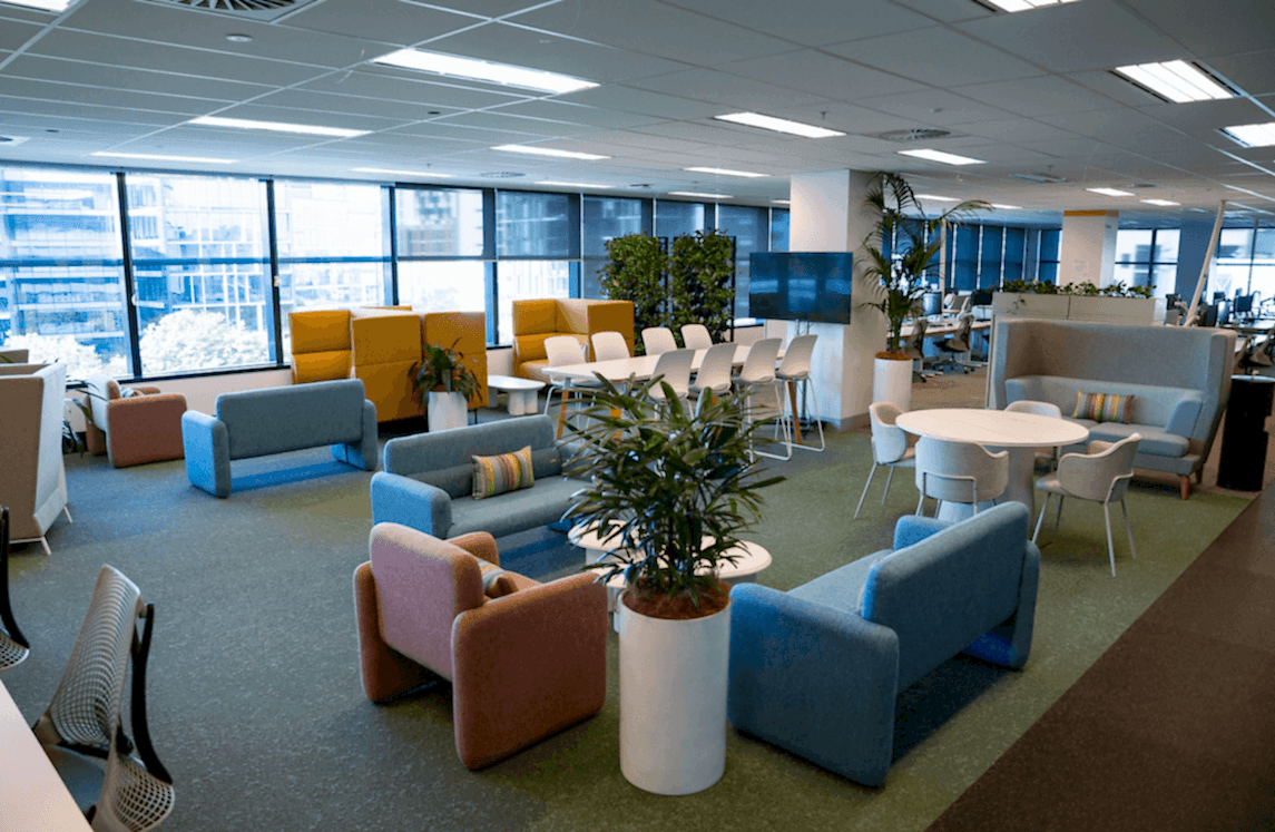 This corporate bank’s collaboration hub was redesigned to enhance teamwork, productivity, and flexibility. Smart spatial planning optimises breakout zones, quiet areas, and meeting spaces, balancing connection with focus. Durable fabrics and refined furniture ensure longevity while maintaining a professional yet inviting aesthetic. Breakout zones foster creativity, while private areas support concentration, creating a seamless blend of collaboration and solitude. The result is a dynamic workspace that elevates both engagement and efficiency.