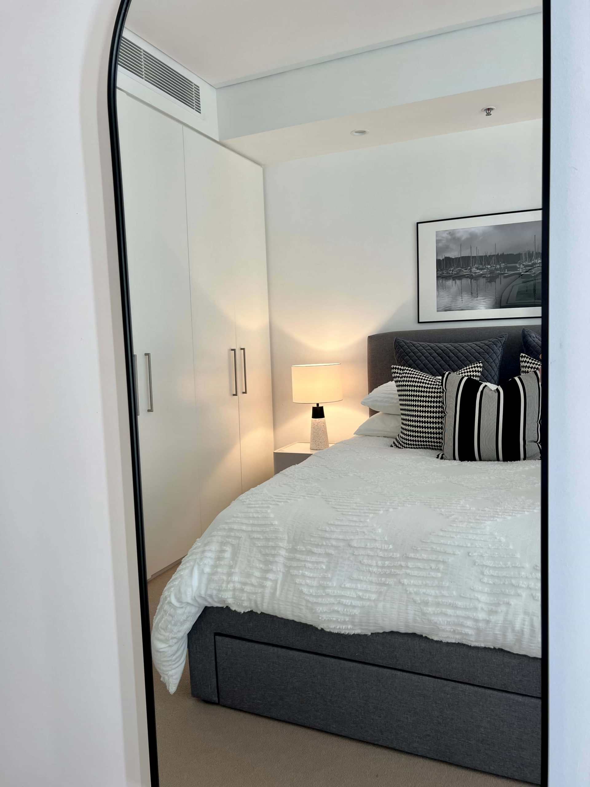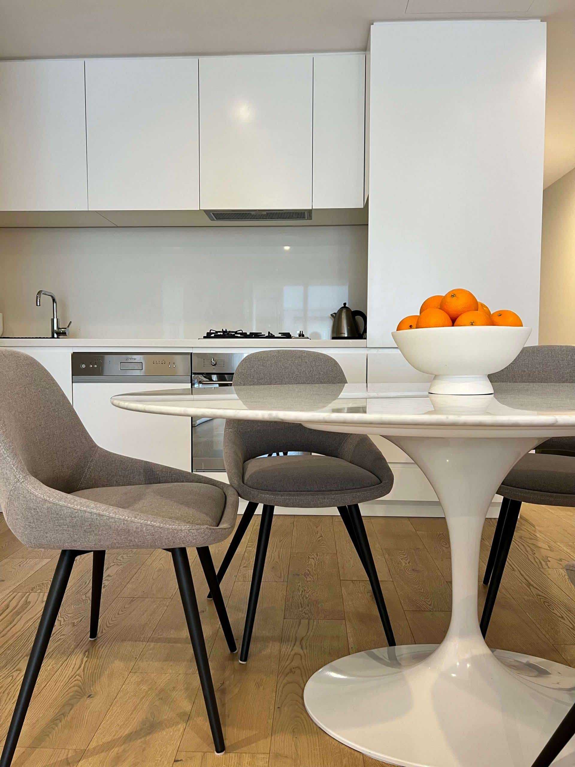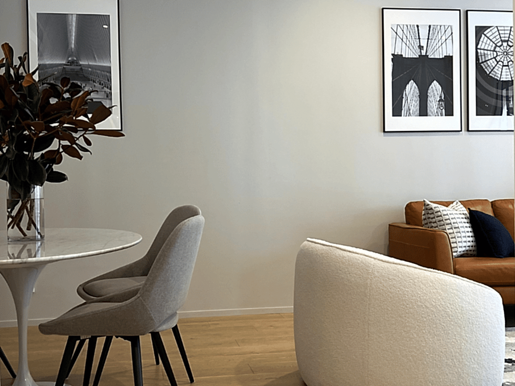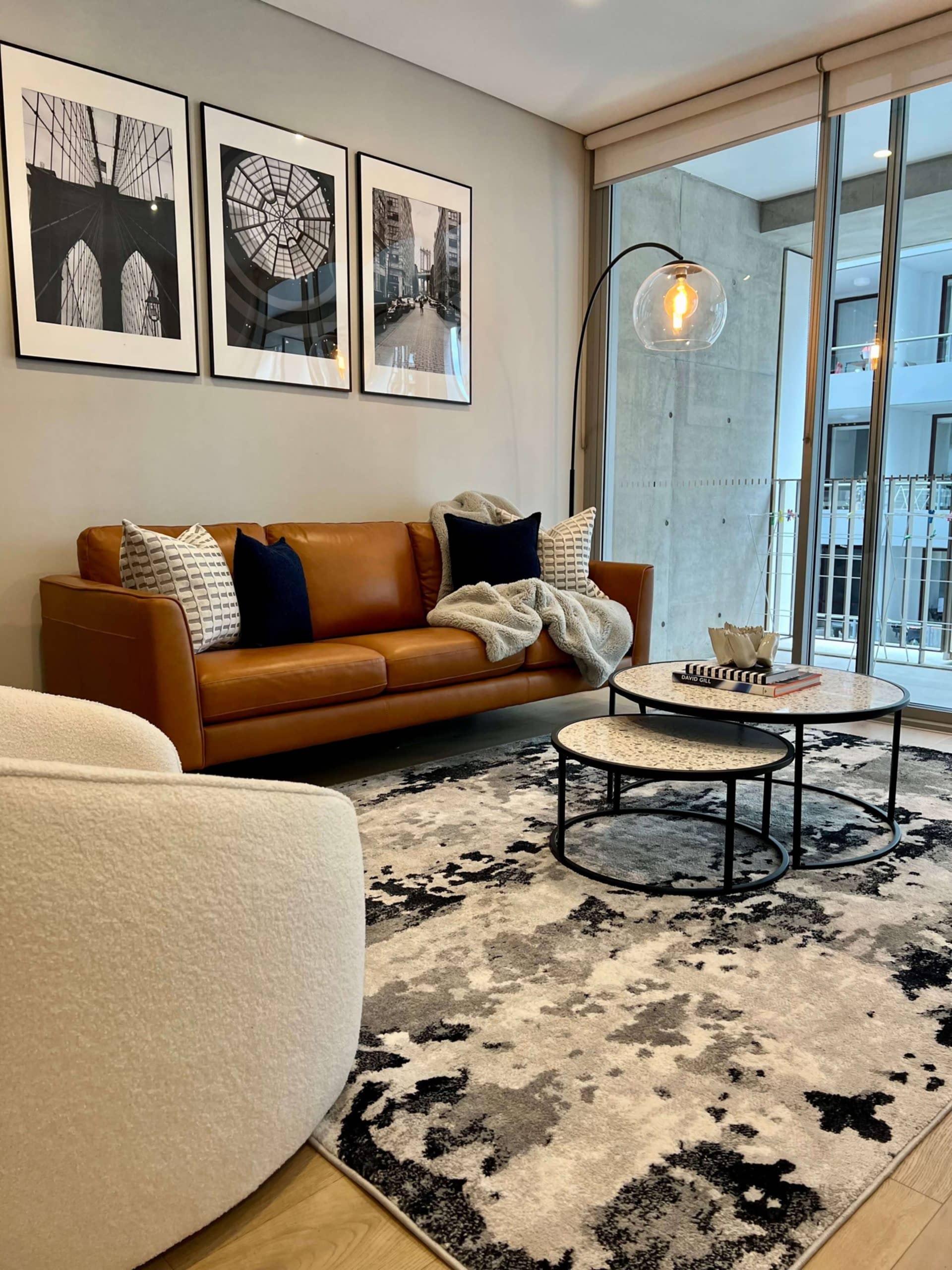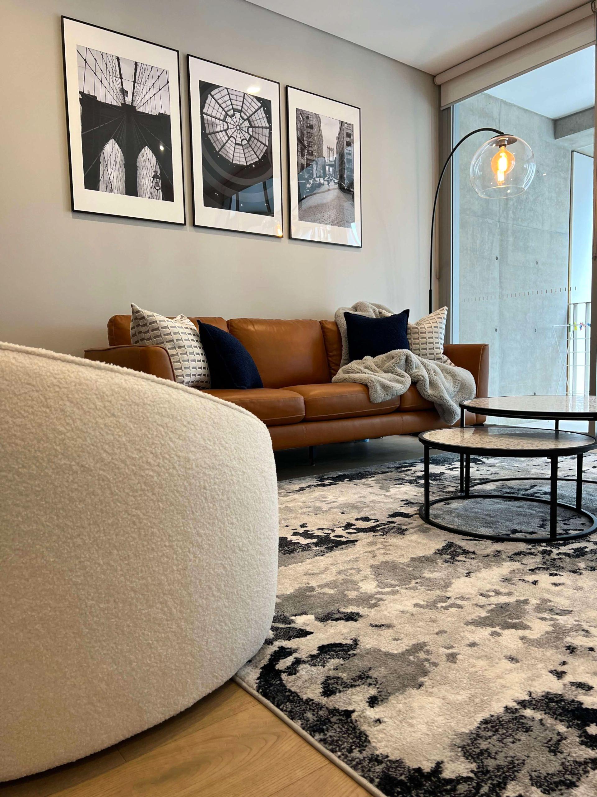 This inner-city apartment is a sophisticated retreat for a busy executive, balancing bold masculinity with effortless style. A monochromatic black-and-white palette, inspired by the client’s love for photography, is softened by warm honey oak flooring and polished concrete walls, creating a refined yet edgy aesthetic. Clean-lined, minimal furnishings prioritize function without compromising elegance, with layered textures like leather and wool adding depth. Durable finishes and streamlined surfaces suit a fast-paced lifestyle, while curated black-and-white photography nods to the client’s passion for travel. The result is a striking yet inviting home that seamlessly blends modern sophistication with personal expression.